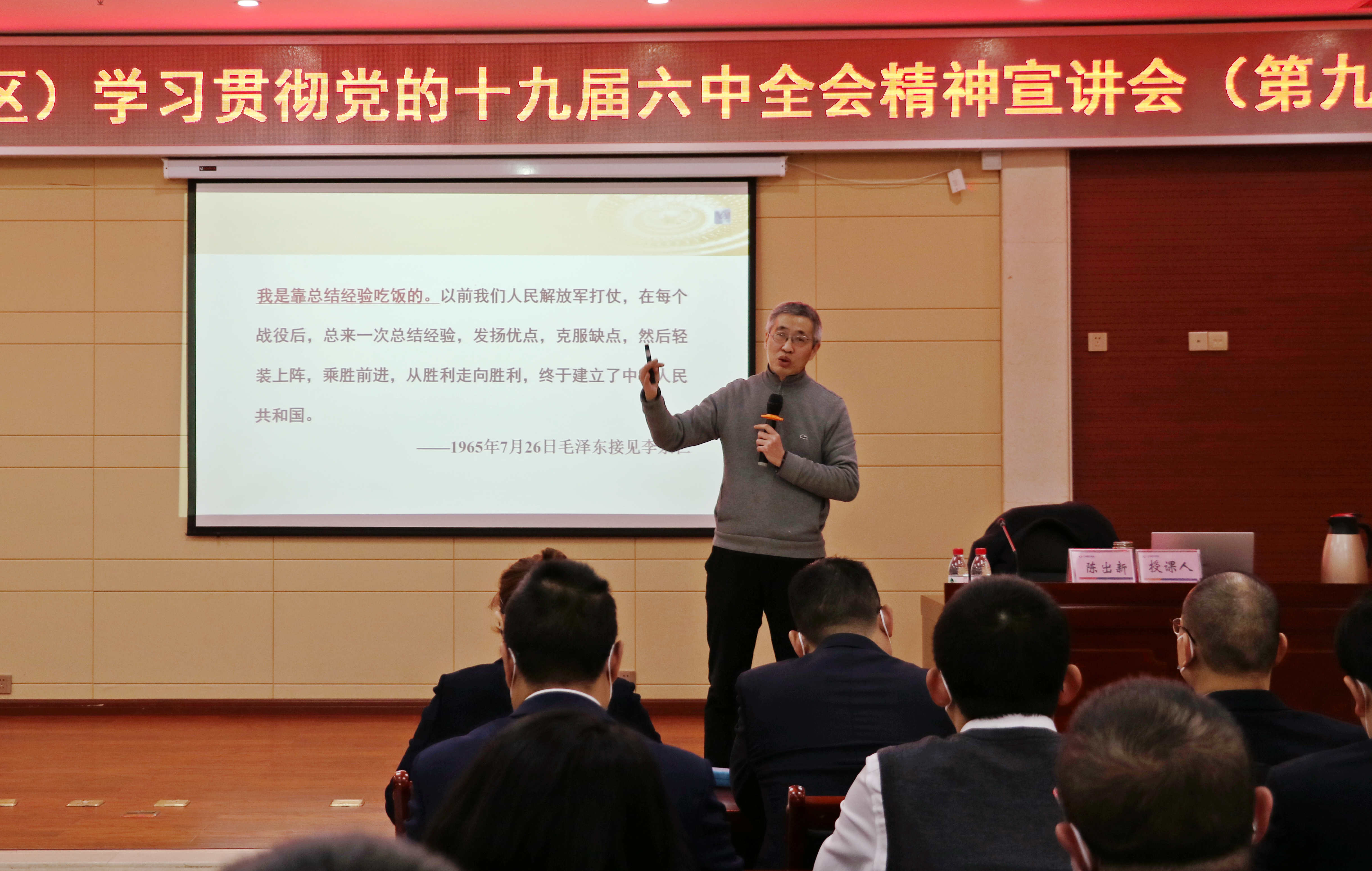 第九場宣講會由市委黨校經(jīng)濟(jì)學(xué)教研室陳出新教授作專題宣講,陳出新圍繞黨的百年奮斗重大意義、重大成就、歷史經(jīng)驗(yàn)和初心使命,闡明了省委十一屆十次全會貫徹黨的十九屆六中全會精神的戰(zhàn)略考量和重要舉措,對市第九次黨代會貫徹落實(shí)黨中央和省委重大決策部署,擘畫瀘州未來五年宏偉藍(lán)圖的戰(zhàn)略部署作了深入解讀。